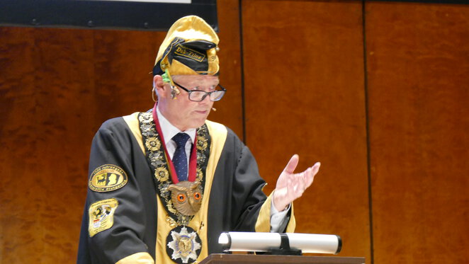 Ab Glock 8:30 des frühen Morgens füllte sich erst zögerlich, aber dann doch ziemlich rasch die Tagungsstätte bis auf den letzten Platz. Pünktlich Glock 10 eröffnete der 1. Vorsitzende DSR Rt. Ce-Laus die Versammlung. 106 Legaten hatten sich eingefunden. Sie vertraten insgesamt 138 Reyche. Rt. Ce-Laus lenkte mit viel Geschick und großer Geduld durch die manchmal auch kontrovers geführten Debatten zu den Anträgen.